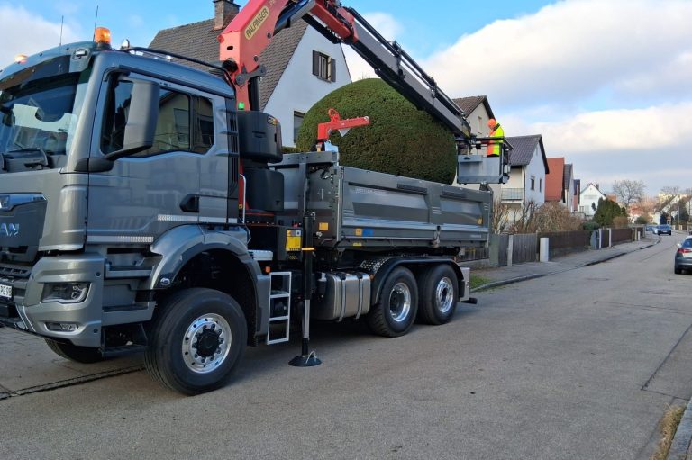 Mit der integrierten Hebebühne kommen wir mühelos in jeden Garten. Ob Baumzuschnitt oder Fällung. Für uns kein Problem. Dank dem anbaubaren Greifer können die geschnittenen Geäste mühelos auf den LKW geladen und abtransportiert werden.